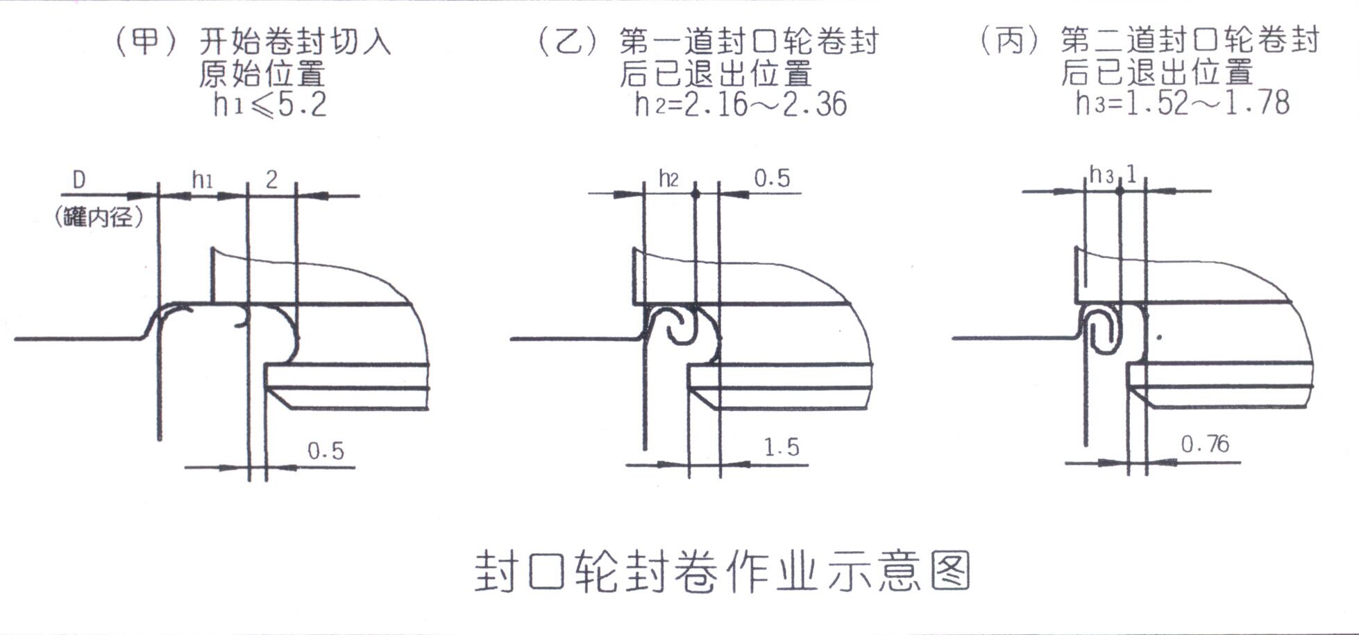 1、 本機封口輪均采用優(yōu)質(zhì)鋼材精密加工,并通過(guò)熱處理,使封口輪卷封精確,壽命長(cháng)久
