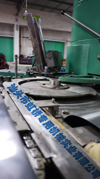 本機進(jìn)罐結構采用轉盤(pán)式高速轉動(dòng)將罐導入各個(gè)卷封機頭的托罐板上,罐蓋置放于罐蓋存儲器上,通過(guò)特定送蓋盤(pán)將蓋順延進(jìn)入送蓋軌道,罐和蓋同步進(jìn)行,并配合好進(jìn)入卷封機頭以進(jìn)行卷封。